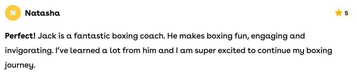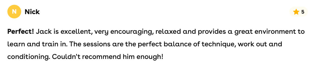 With my 1-to-1 VIP coaching, you’ll master boxing technique, punch harder, and level up your fight IQ. If you’re not impressed after 1 week, you get your money back - no questions asked.