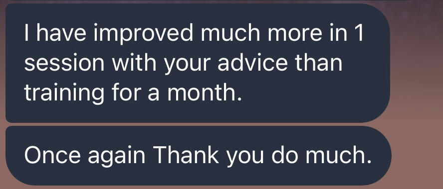 Your drills (and any other footage/questions) will be reviewed by me. You will receive detailed feedback and corrections.